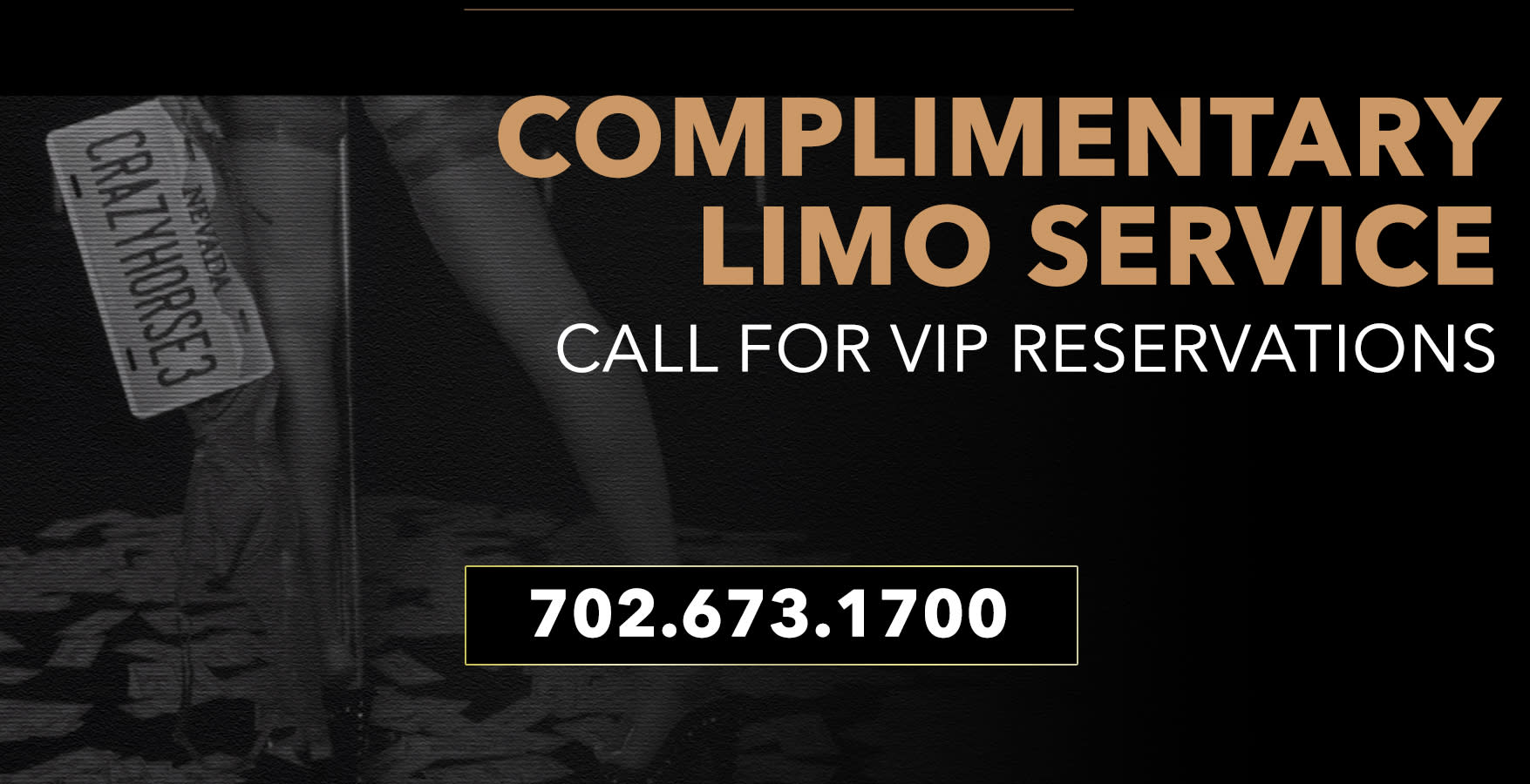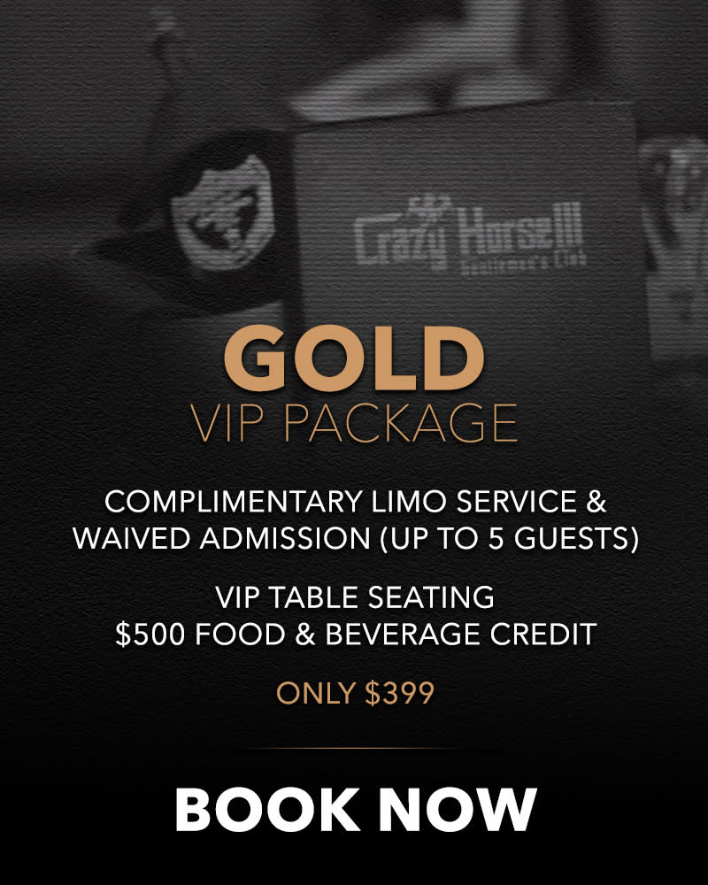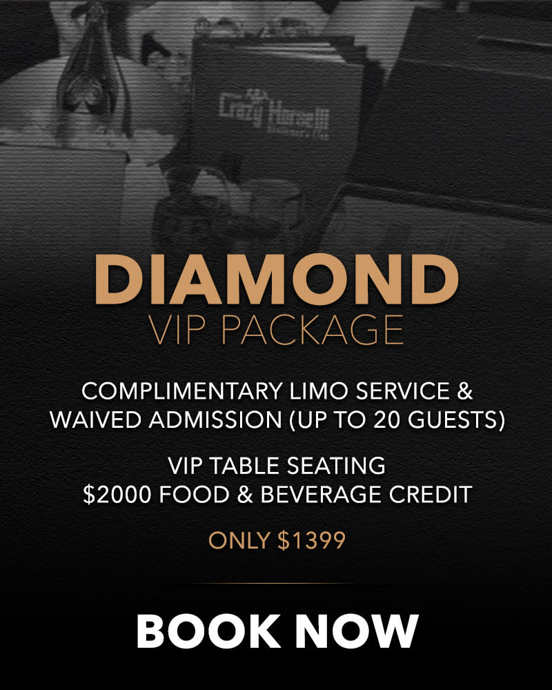 Specialists are available to answer any questions, and numerous VIP Packages and bottle service for individuals or groups of any size are available for prepurchase at 50% off club pricing. All packages include free limo or party bus pickup as well as no cover charge so BOOK NOW and experience the best gentleman's club in the world, Crazy Horse 3!